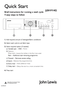 JOHN LEWIS JLBIWM1404 Quick start guide,